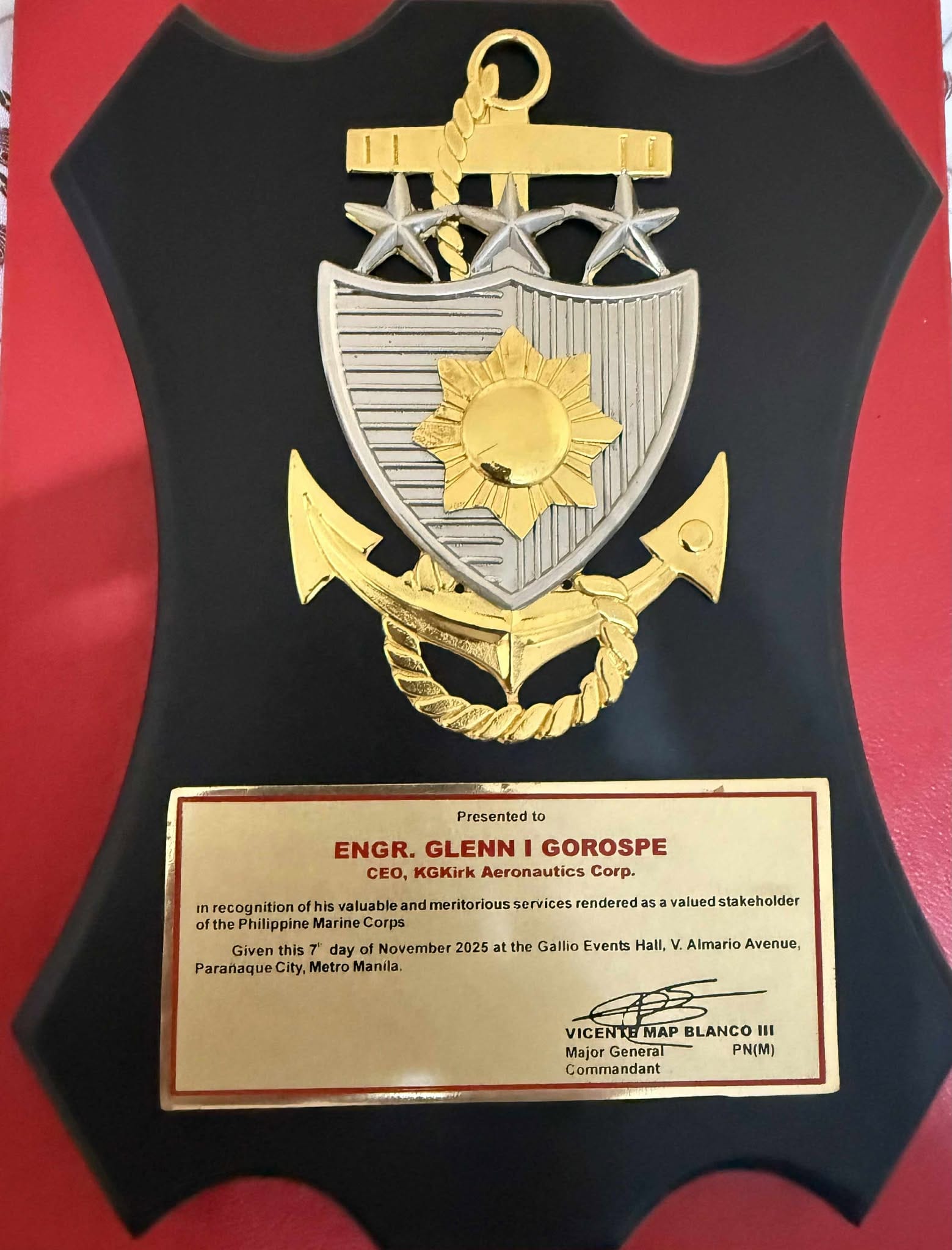 KGKirk Aeronautics Corp. is proud to stand in solidarity with the Philippine Marine Corps in advancing the shared values of discipline, unity, and service to the Filipino people. This recognition reinforces the company’s commitment to supporting national defense initiatives and building stronger partnerships for a safer, more resilient Philippines.